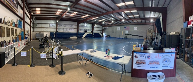 The club is located in an over 8000 square foot room filled with over three full mats of wrestling space. The room also has weight equipment, cardio equipment, ropes, rings, Jacobs ladder, medicine balls, slam balls, tires, pull up bars, weights sled, training bands, and much more to keep the wrestlers in top shape year-round. Our address is 13490 Benns Church Blvd Smithfield, VA 23430.